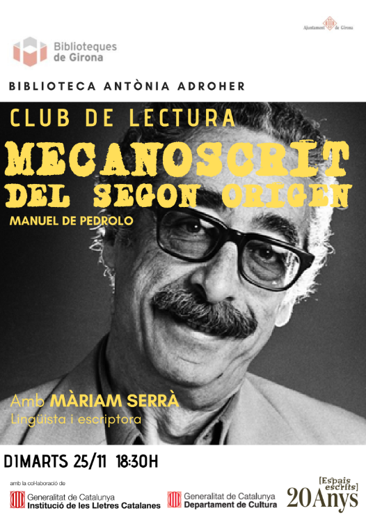 Club de lectura amb la participació de Màriam Serrà i a càrrec de Guillem Terribas, a la Biblioteca Antònia Adroher (carrer de Can Sunyer, 46).