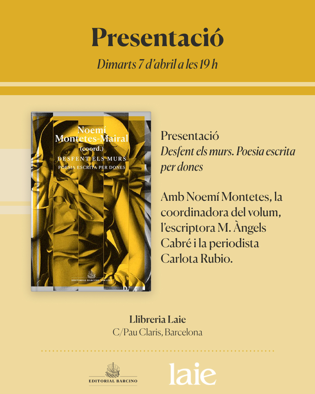 Amb la coordinadora del volum Noemí Montetes, l'escriptora M. Àngels Cabré i la periodista Carlota Rubio, a la llibreria Laie (carrer de Pau Claris, 85).