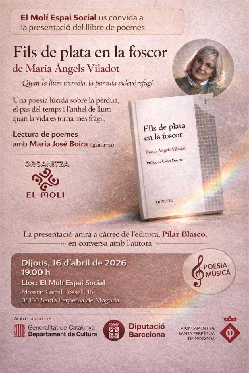 Presentació a càrrec de Pilar Blasco i lectura de poemes amb Maria José Boira, al Molí Espai Social (carrer de Mossèn Camil Rossell, 16).