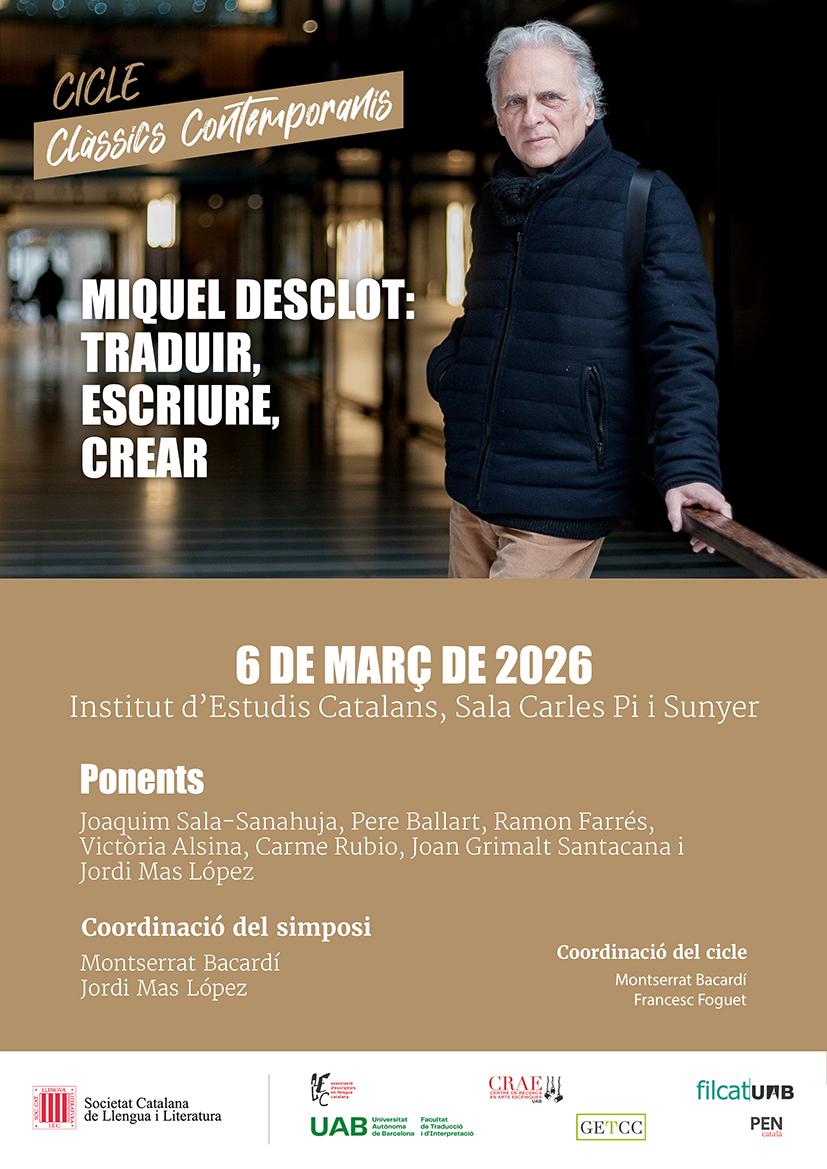 Després del panorama sobre els diversos gèneres de les lletres catalanes del segle XXI, en el marc del cicle de "Clàssics Contemporanis", impulsat també per la Societat Catalana de Llengua i Literatura (filial de l’Institut d’Estudis Catalans), es dedica un simposi a la figura de Miquel Desclot, que s'ha dedicat al teatre, la poesia, la música i la literatura infantil i juvenil. Ha catalanitzat clàssics centrals del cànon occidental, com Petrarca, Shakespeare, Molière o Goethe, i ha reflexionat a bastament sobre la traducció com a procés i acte literari.
