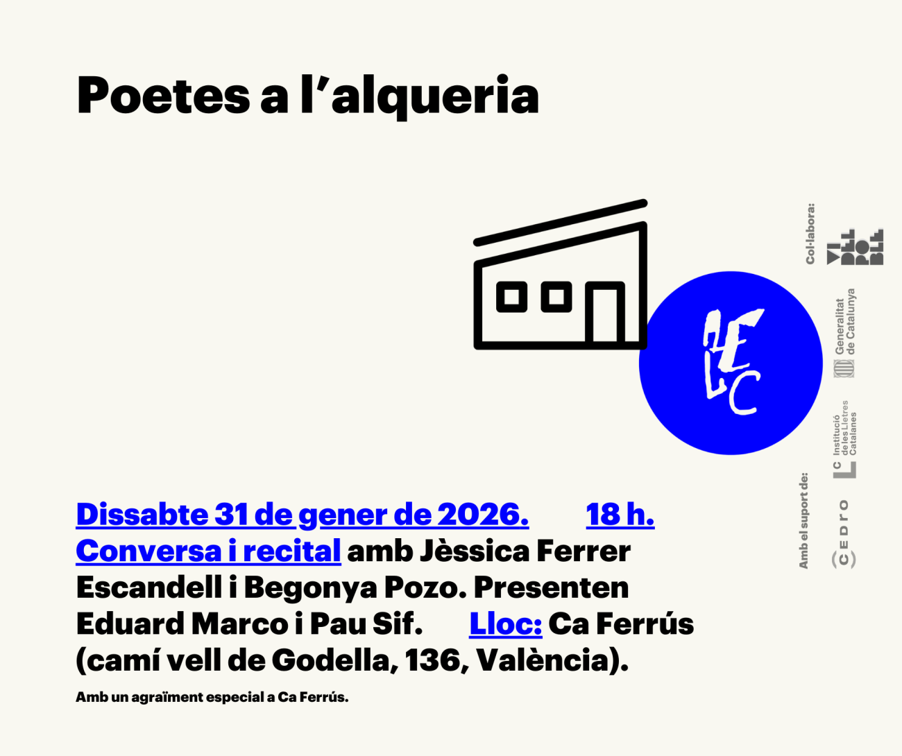 Amb un agraïment especial a Ca Ferrús. Aquesta activitat té el suport de CEDRO i de la Generalitat de Catalunya i la Institució de les Lletres Catalanes i la col·laboració de Vi del Poble.