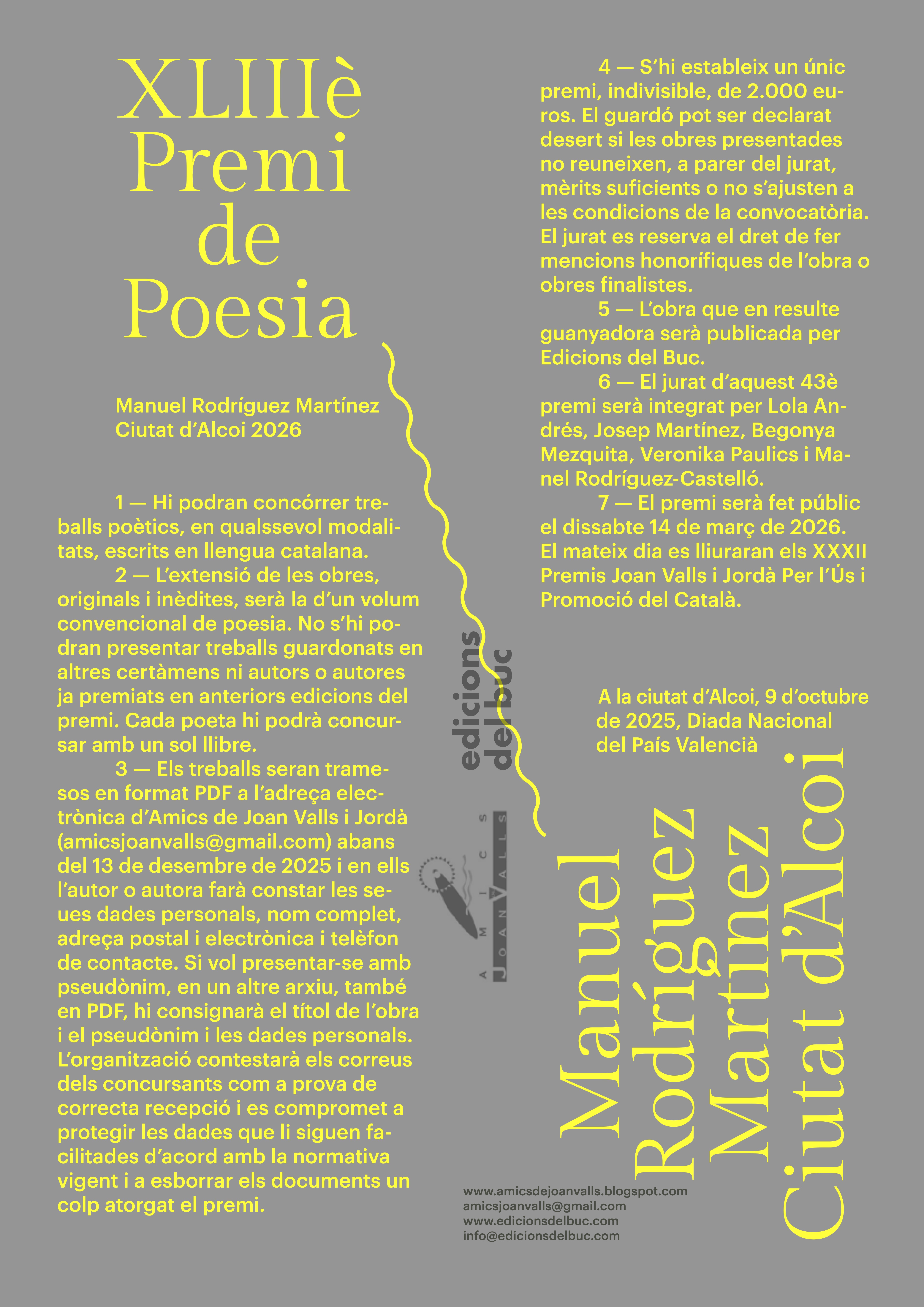 XLIII Premi de Poesia Manuel Rodríguez Martínez Ciutat d'Alcoi. Termini: 13.12.2025. Bases