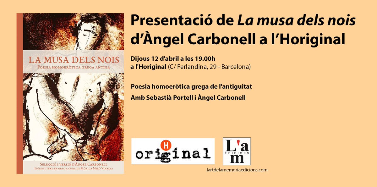 (L'Art de la Memòria), 100 epigrames homoeròtics de l'«Antologia grega» en versió poètica catalana d'Àngel Carbonell. Amb l'autor i Sebastià Portell.