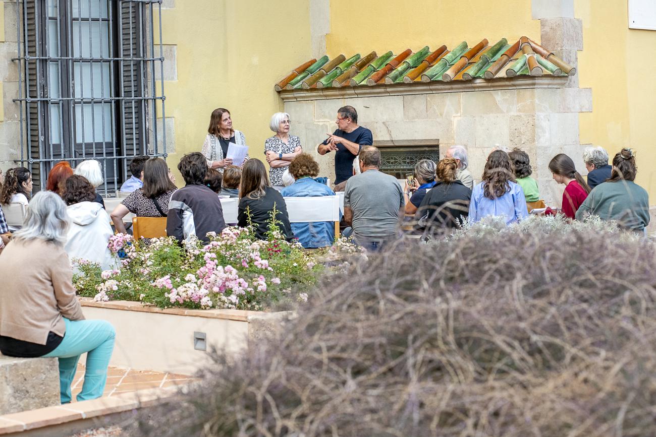 La conversa va continuar al pati de l’Institut d’Estudis Catalans amb un brindis de cloenda.